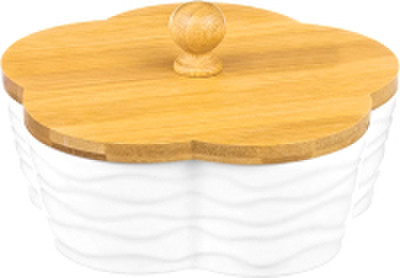Банка «Цветок» из серии «Айсберг волны» объемом 900 мл с крышкой подойдет для хранения печенья, конфет и других сладостей. Банка выполнена из высококачественного фарфора в форме цветка и украшена рельефными узорами. Крышка банки выполнена из натурального бамбука. Банку без крышки можно использовать в микроволновой печи и посудомоечной машине. Поставляется в яркой картонной упаковке.