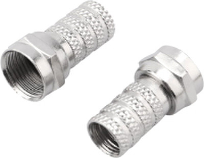 Резьбовой F-разъем RG-6 «AB» используется при подключении видеосистем, кабельного и эфирного телевидения. Предназначен для соединения коаксиального кабеля с телевизионным и видеооборудованием: ресиверы, телевизоры, всевозможная видеоаппаратура и т. д. Разъем данного вида не имеет собственного штекера, его роль выполняет центральная жила кабеля: это позволяет избежать дополнительных потерь сигнала. F-коннектор изготовлен из никелированного сплава меди (биметалл). Разъем RG-6 устанавливается вручную методом накрутки гильзы разъема на внешнюю оболочку кабеля после соответствующей зачистки контактов. Не требует применения специальных инструментов. F-штекер выступает в роли электрического контакта и своеобразного экрана.