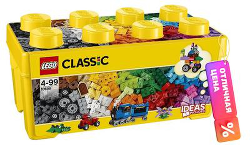 Создавайте собственные автомобили и многое другое из этой классической коллекции кубиков LEGO 35 разных цветов.