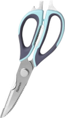 ">Обратите внимание!Лезвия выполнены из высококачественной нержавеющей стали и закалены, что позволяет им долгое время оставаться острыми и выдерживать значительные нагрузки.Специальная заточка режущих граней обеспечивает точный рез с минимальными усилиями.Разборная конструкция облегчает мойку ножниц.Ножницы оснащены встроенными приспособлениями для открывания бутылок, банок и колки мелких орехов.Эргономичные рукоятки обеспечивают комфортное использование.Рекомендовано мыть вручную сразу после использования.Ширина: 8 см.Толщина: 1.5 см.Вес: 143.8 г.