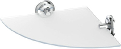 Стеклянная полка используется для оформления интерьера ванной комнаты в разных стилистических решениях. Обычно она располагается над раковиной. Полка из прочного высококачественного стекла представлена в угловом исполнении. Это оригинальное изделие станет отличным дополнением к угловой раковине, а также поможет решить проблему с размещением гигиенических принадлежностей во время водных процедур. Угловая стеклянная полка оснащена металлическими креплениями с хромовым покрытием для защиты от коррозии. Особенностью является оригинальная форма розетки, которая символизирует волны расходящиеся от упавшей капли воды.