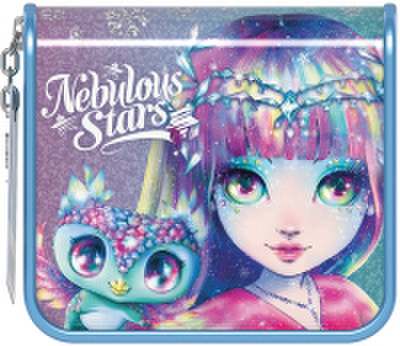Волшебный кошелек для девочки от звездочки Hazelia. Прекрасное дополнение к твоему школьному рюкзаку или пеналу с принтами на тему Туманной галактики Nebulous. Кошелек включает отделение для монет (на молнии), несколько кармашков для кредитных карт и отделение для бумажных денег. Благодаря большому количеству кармашков и отделений ты сможешь надежно спрятать туда свои богатства и, даже, картинку с любимой звездочкой Туманной галактики. Кошелек складывается пополам и застегивается на кнопку.