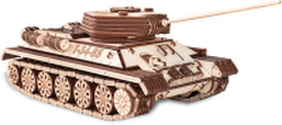 Танк Т-34-85 механическая 3D-модель легендарного советского танка предназначенная для самостоятельной сборки. Эффектное сходство с оригиналом, наличие мощного резиномотора, который приводит в движение танк, устройство заводки-запуска-остановки, поворотная башня, подвижный ствол, открывающиеся люки, гусеницы с амортизацией, экологически чистые материалы и качественная прорисовка элементов, доставят максимум удовольствия от сборки и радость от использования как детям, так и взрослым. Отличный конструктор, эффектная игрушка, замечательный подарок и оригинальный предмет коллекционирования для дома.