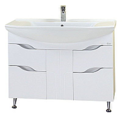 2 декоративные хромированные и 3 пластиковые ножки с регулировкой по высоте идут в комплекте с тумбой.