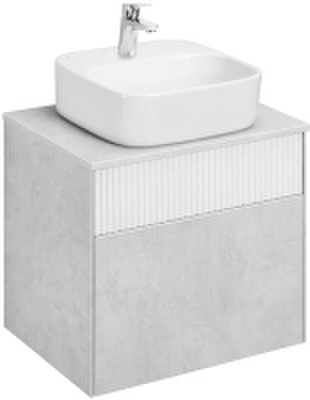 Умывальник в комплект не входит!Тумба Марбл функционально состоит из двух вместительных ящиков, оснащенных системой push-to-open, обеспечивающей надежное, комфортное и бесшумное закрывание. Верхний фасад изделия выполнен из МДФ с реечной фрезеровкой в белой матовой пленке с эффектом soft-touch, а нижний фасад и корпус из ламинированной влагостойкой ДСП Слэйт. Верхний и нижний ящики позволяют содержать косметические средства в идеальном порядке. К тумбе идеально подходят несколько накладных раковин: раковина Santek Одри Soft, Roca Mila круглая и Roca Mila прямоугольная.