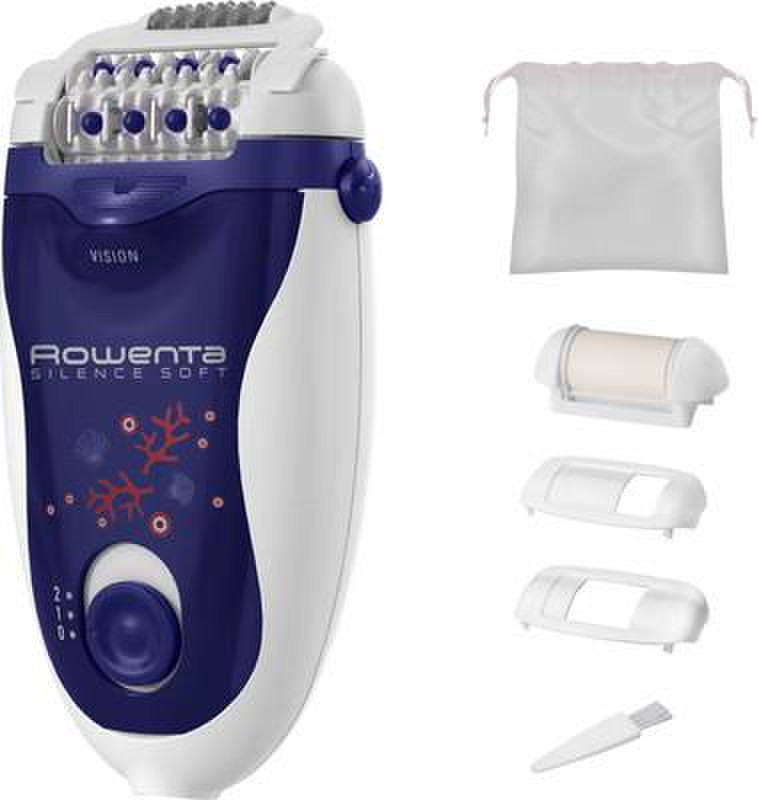 Эпилятор женский Rowenta Silence Soft EP5625F0.Откройте для себя быстрое, эффективное и деликатное удаление нежелательных волос вместе с эпилятором Silence Soft. Благодаря высокоточным пинцетам прибор позволяет удалять даже самые короткие (0,5 мм) и тонкие волоски, не обрывая их, а функция Vision подсветит область эпиляции и поможет добиться идеально гладкого результата. Наслаждайтесь комфортным использованием под любым углом и на всех изгибах вашего тела, а также ухаживайте за самыми деликатными зонами благодаря широкому набору аксессуаров и адаптируйте режим работы прибора под свои потребности, выбирая любую из двух скоростей.Функция VisionВсегда безупречный результат: функция Vision подсвечивает область эпиляции и не позволяет пропустить даже самые тонкие и светлые волоски.Высокоточные пинцетыТехнология высокоточных пинцетов позволяет удалять даже самые короткие волоски (0,5 мм) без их повреждения.Под любым угломОсобая конструкция и специальный датчик позволяют эффективно использовать эпилятор на любом изгибе тела и под любым углом.Аксессуары для чувствительной кожиАксессуары для подмышек и зоны бикини помогут бережно удалить волосы на деликатных участках кожи, а насадка для пилинга обеспечит более мягкую эпиляцию.Быстро и эффективноСпециальные направляющие для волос и большая рабочая поверхность эпилятора обеспечивают максимальную эффективность удаления волос в одно движение.Против раздраженияАктивное массажное действие делает эпиляцию еще более бережной и значительно снижает вероятность появления раздражения.Выбор скоростей2 скорости, включая деликатный режим с меньшей скоростью вращения, позволяют подобрать нужный режим работы под ваши потребности.