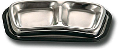Triol 1080-DCB01 – это двойная металлическая миска для кошек и собак небольших пород, сделанная из нержавеющей стали. Она легко моется под струей воды с использованием моющих средств.