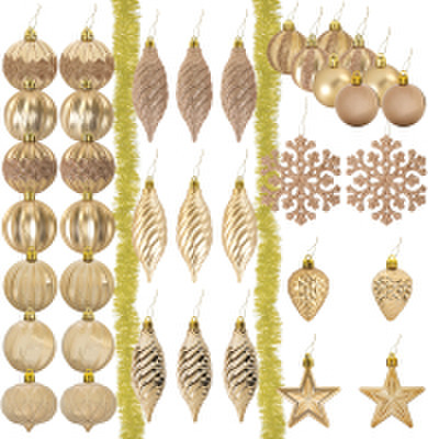 Елочные изделия, выполненные в золотом цвете, станут яркой деталью на вечнозеленом дереве. Существует поверье, что золото притягивает богатство и процветание, по этой причине драгоценный металл был олицетворением божества у многих древних народов. Размер в упаковке: 12.6x38.2x25.7 см.