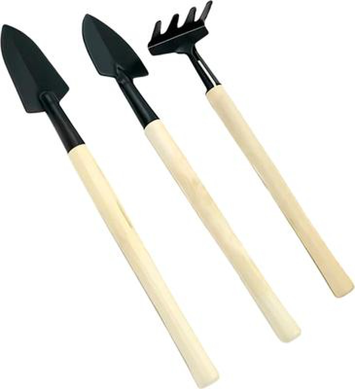 Компактный набор для ухода за комнатными растениями. Подходит для посадки, пикировки, пересадки, рыхления почвы в горшках, кашпо и балконных ящиках.Состоит из трёх предметов: лопатки широкой формы, узкой лопатки и грабель.Рабочие элементы изготовлены из металла, устойчивого к деформации и влажности. Деревянные ручки удобно лежат в руке, не скользят и оснащены отверстиями для подвешивания. Миниатюрный размер инструментов облегчает доступ к корням и позволяет аккуратно работать даже с мелкими растениями или суккулентами.Подходит для декоративных, овощных и ягодных культур, выращиваемых в горшках и кашпо. Удобное решение для ухода за растениями в доме, на балконе и в теплице. Подходит как для любителей, так и профессионалов.