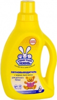 Пятновыводитель Ушастый нянь разработан специально для усиления действия стирального порошка и выведения пятен с детских изделий, в том числе новорожденных. Современные энзимы, содержащиеся в составе, удаляют трудновыводимые пятна. Пятновыводитель эффективен уже при 30 °С, что снижает негативное воздействие на волокна ткани. Это способствует сохранению первоначального вида одежды даже после многократных стирок. Специально подобранная система «колор» сохраняет цвет и яркость ткани. Не содержит хлор. Может использоваться как при стирке вручную, так и в стиральной машине.