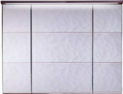 Зеркальный шкаф имеет 2 распашные дверцы по бокам и 1 центральная дверь посередине. За каждой дверцей имеется по 2 стеклянные съемные полочки. Подсветка светодиодная встроенная в корпус крыши шкафчика и спрятана в пластиковый короб.