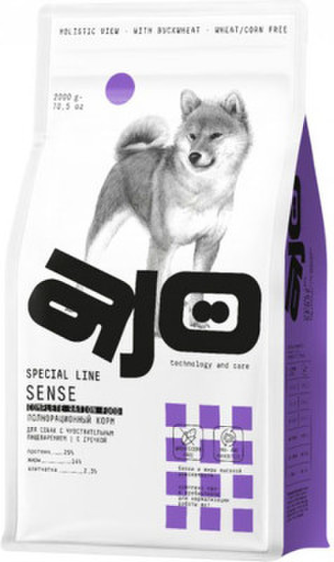 Сухой корм для собак AJO Dog Sense с гречкой для собак с чувствительным пищеварением